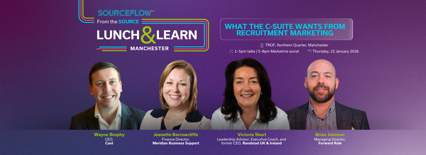 SourceFlow’s From The Source x Manchester Lunch & Learn event brought together recruitment marketers and growth-focused leaders in the city’s Northern Quarter for an afternoon of speaker sessions and a leadership panel examining how recruitment marketing is assessed in terms of cost, contribution, and commercial impact.