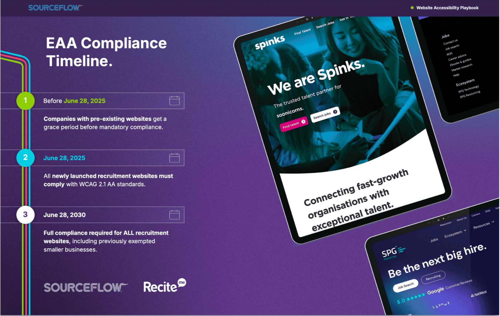 The ‘Recruitment Website Accessibility Checklist & Timeline’ playbook provides a clear breakdown of the essential standards your site must meet to remain compliant and inclusive.